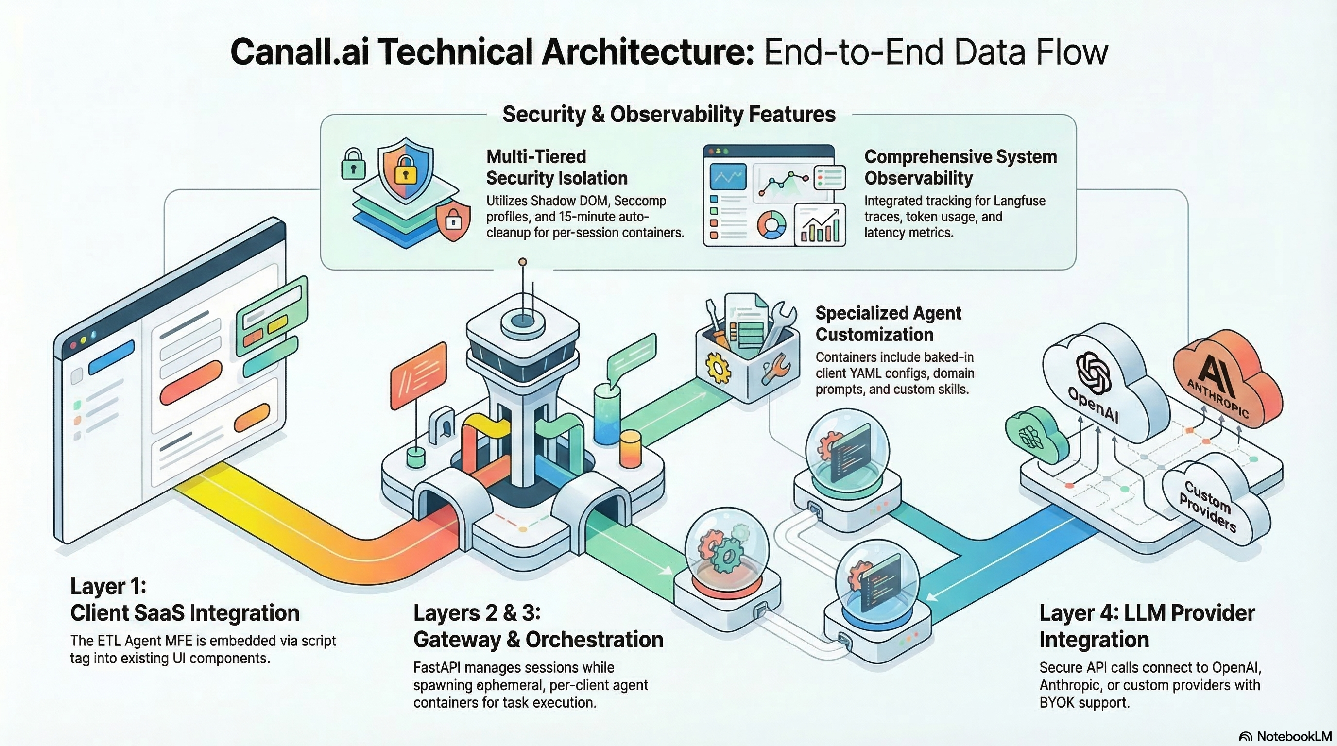 Multi-layered architecture with security and observability built in at every level.